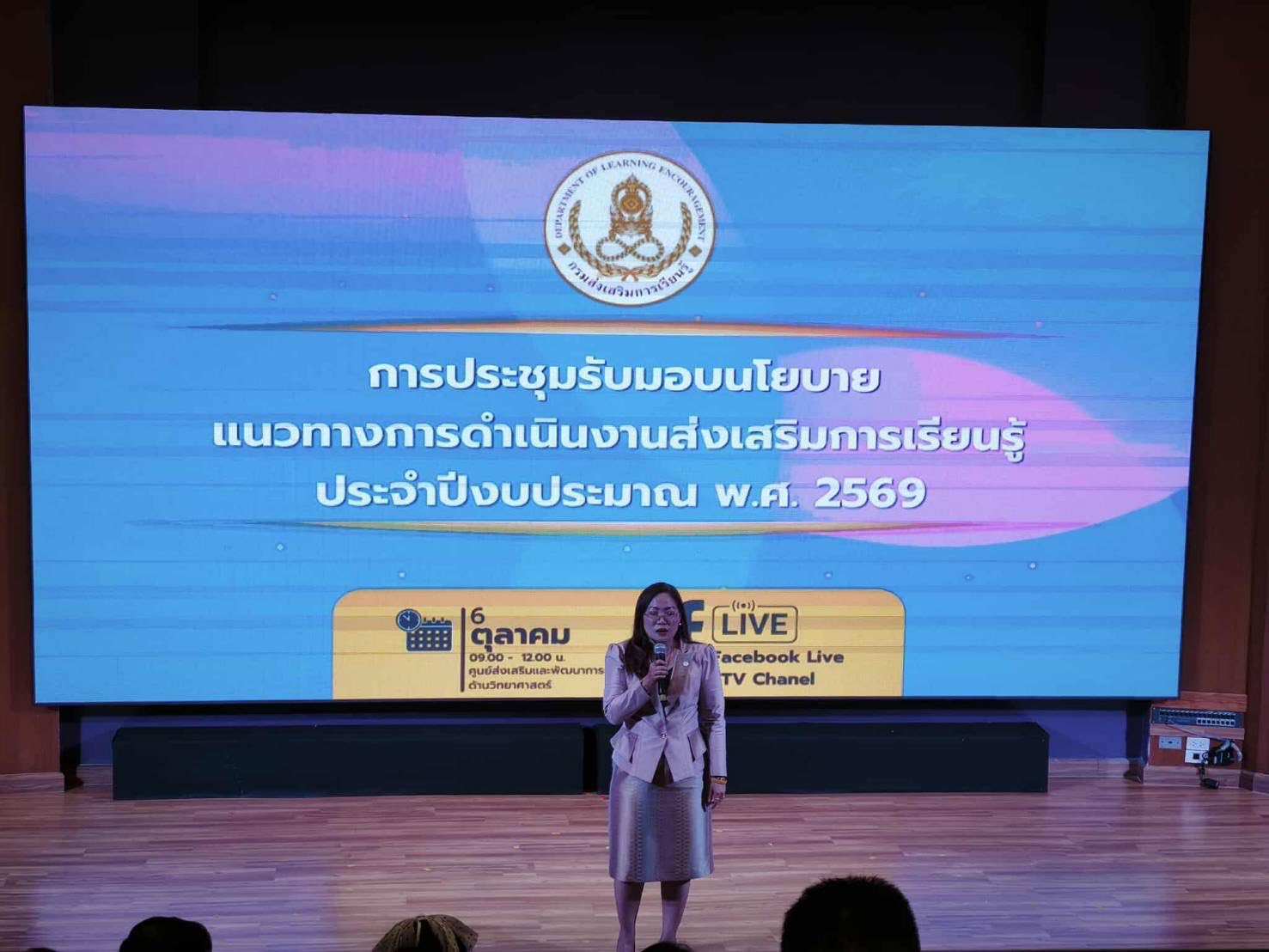 ดร.ถาวร พลีดี ผู้อำนวยการสำนักงานส่งเสริมการเรียนรู้ประจำจังหวัดอุบลราชธานี วิทยฐานะเชี่ยวชาญพิเศษ พร้อมด้วย ว่าที่ร้อยตรีกีรติ กุลบุตร รองผู้อำนวยการสำนักงานส่งเสริมการเรียนรู้ประจำจังหวัดอุบลราชธานี เข้าร่วมประชุมรับมอบนโยบายและแนวทางการดำเนินงานส่งเสริมการเรียนรู้ ประจำปีงบประมาณ พ.ศ. 2569 ภายใต้แนวคิด “เสริมงานเดิม สร้างงานใหม่ ให้เท่าทันสังคมโลก By สกร.” โดยมี นางเกศทิพย์ ศุภวานิช อธิบดีกรมส่งเสริมการเรียนรู้ เป็นประธานการประชุม ณ ห้องมหกรรม ชั้น 2 และห้อง Blue Planet ชั้น 4 ศูนย์ส่งเสริมและพัฒนาการเรียนรู้ทางวิทยาศาสตร์ กรุงเทพมหานคร ทั้งนี้ ในการประชุมดังกล่าวมีการเสวนา “Learn to Earn : การเรียนรู้สู่การสร้างอาชีพ สร้างรายได้” โดยมีผู้ร่วมเสวนาจากภาคการศึกษา ภาคธุรกิจ และหน่วยงานภาครัฐ อาทิ ดร.ดิสพล จันสิริ คณบดีคณะดิจิทัลอาร์ตและดีไซน์ มหาวิทยาลัยหอการค้าไทย นางกิตติยา ชัยสถาพร รองกรรมการผู้จัดการ บริษัท ศรีนานาพร มาร์เก็ตติ้ง จำกัด (มหาชน) นายผกายเนติ์ เล่งอี้ ผู้ช่วยปลัดกระทรวงพาณิชย์ นายธิติพัทธ์ อัครวงศ์วริศ กรรมการผู้จัดการ บริษัท วินเนอร์ อินเตอร์ พลาส จำกัด และนายเอกราช ชวีวัฒน์ รองอธิบดีกรมส่งเสริมการเรียนรู้ ดำเนินรายการโดยนางสาววัชรีวรรณ กันเดช ผู้เชี่ยวชาญเฉพาะด้านพัฒนาเครือข่าย โดยการดำเนินงานของ สกร. จะมุ่งสู่ 4 ด้านหลัก ได้แก่ 1. การส่งเสริมการเรียนรู้ตลอดชีวิต การเรียนรู้เพื่อการพัฒนาตนเองและการเรียนรู้เพื่อคุณวุฒิตามระดับ ตามเจตนารมณ์ของพระราชบัญญัติส่งเสริมการเรียนรู้ พ.ศ. 2566 2. ส่งเสริมการอ่านตามมาตรา 5 พัฒนาผู้เรียนให้มีทักษะ Up-skill, Re-skill และ New-skill เชื่อมโยงสู่แนวคิด “Learn to Earn” 3. เสริมพลังภาคีเครือข่ายทุกภาคส่วน ขยายการเรียนรู้สู่ทุกครัวเรือน ทุกชุมชน และทุกช่วงวัย และ 4. ยกระดับการเรียนรู้เพื่อคุณวุฒิตามระดับให้เข้าถึงพื้นที่ห่างไกล เติมเต็มโอกาสทางการศึกษาให้ทุกคนอ่าน เขียน คิด และพัฒนาตนเองได้ต่อเนื่อง