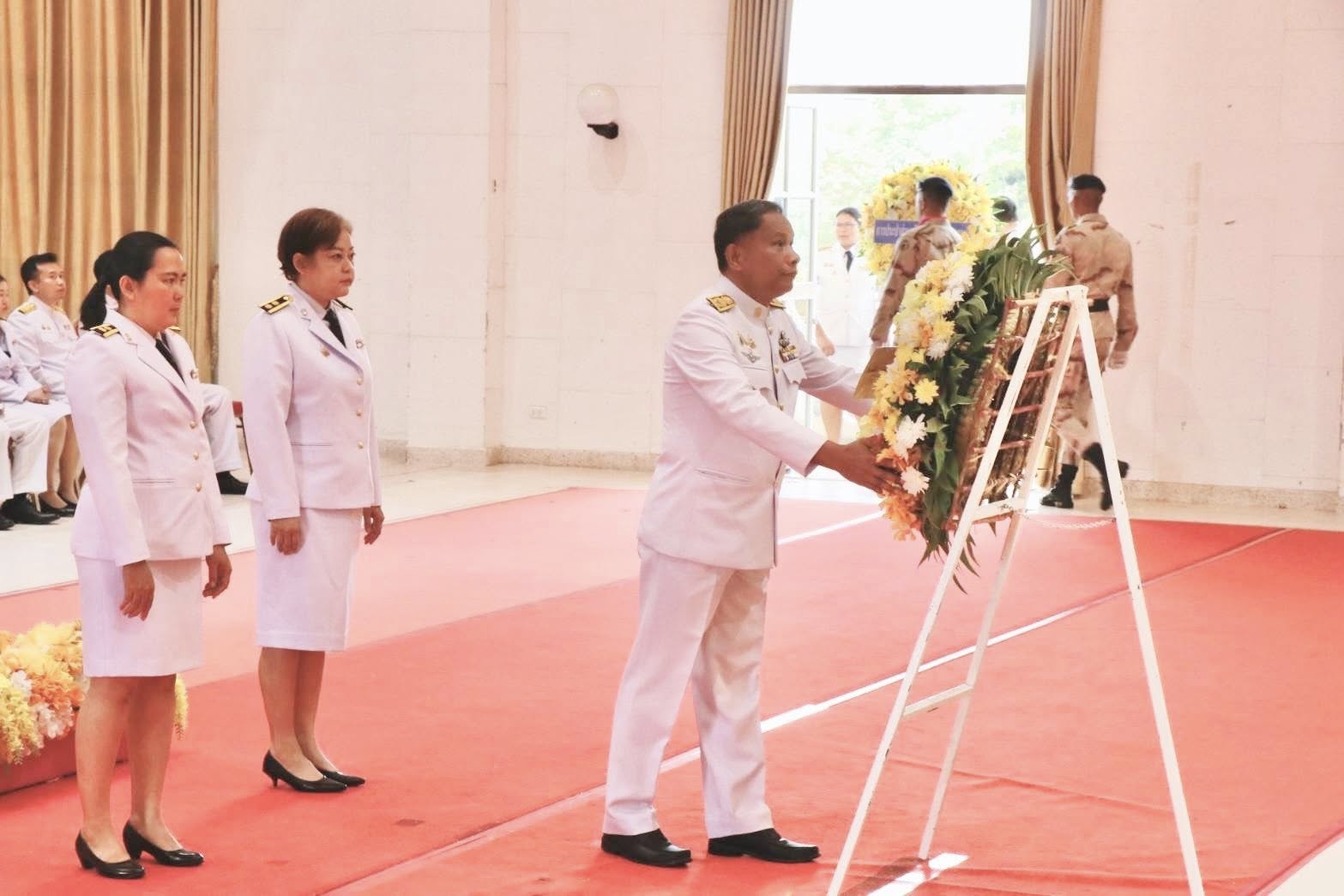 ดร.ถาวร พลีดี ผู้อำนวยการสำนักงานส่งเสริมการเรียนรู้ประจำจังหวัดอุบลราชธานี นำบุคลากร ร่วมพิธีวางพวงมาลา เนื่องในวันนวมินทรมหาราช 13 ตุลาคม 2568