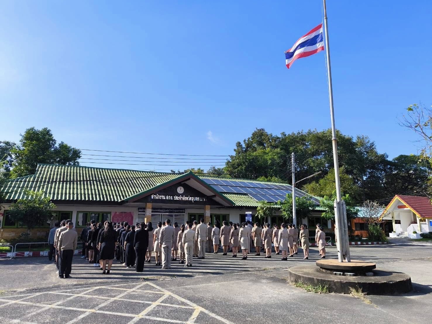 กิจกรรมเคารพธงชาติและร้องเพลงชาติสวดมนต์ไหว้พระ เพื่อแสดงความจงรักภักดีต่อชาติ ศาสนา และสถาบันพระมหากษัตริย์ สำนักงานส่งเสริมการเรียนรู้ประจำจังหวัดอุบลราชธานี