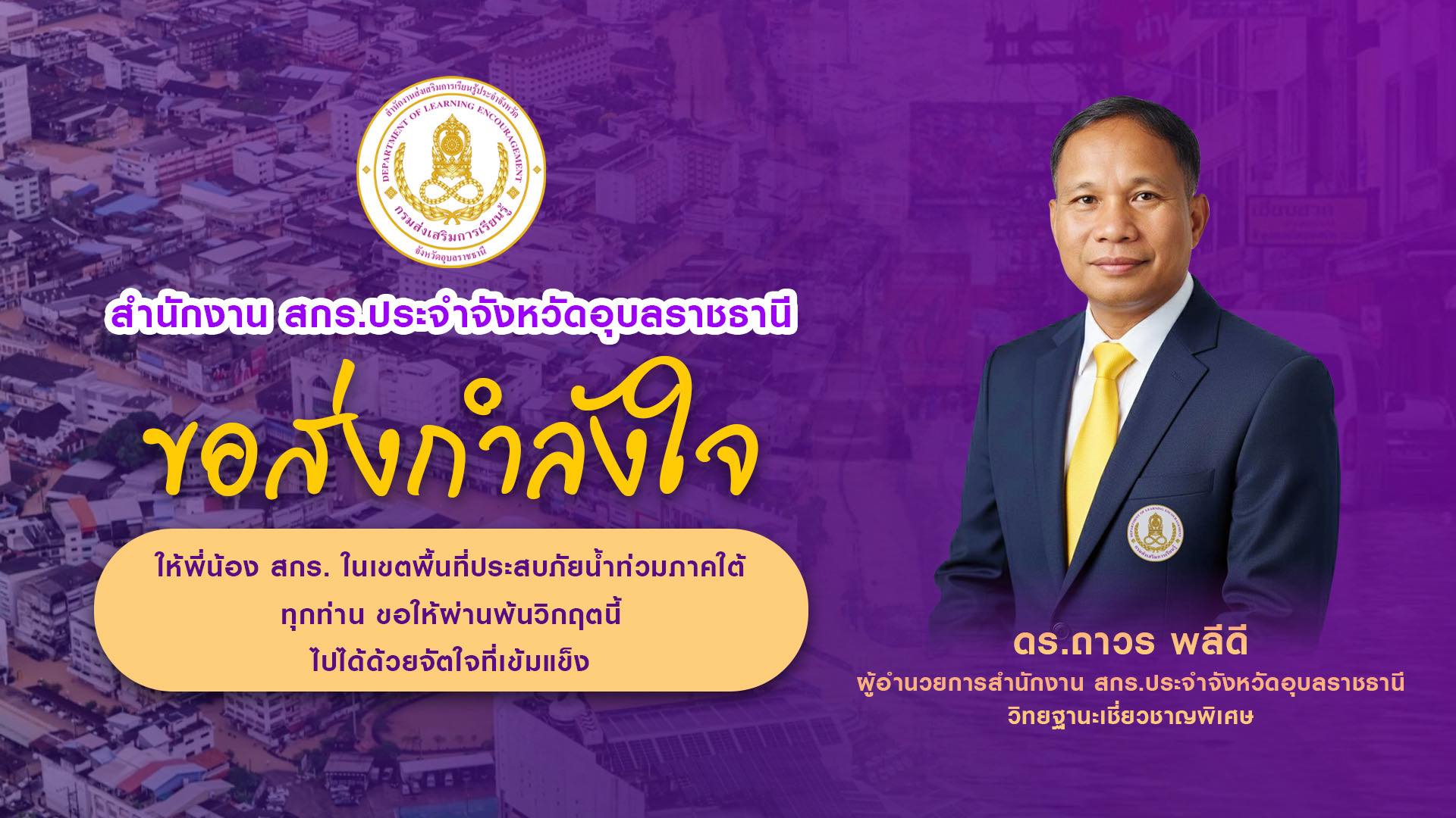 สำนักงาน สกร.ประจำจังหวัดอุบลราชธานี ขอส่งกำลังใจ ให้พี่น้อง สกร. ในเขตพื้นที่ประสบภัยน้ำท่วมภาคใต้ ทุกท่าน ขอให้ผ่านพ้นวิกฤตนี้ ไปได้ด้วยจิตใจที่เข้มแข็ง