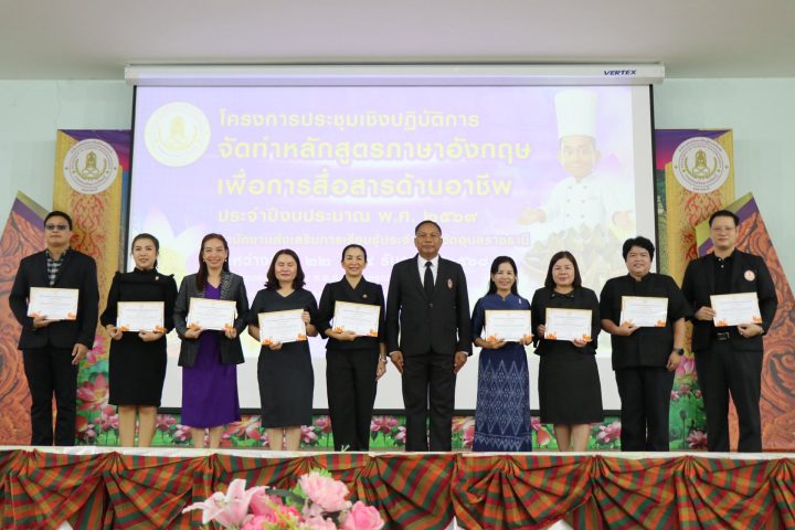 สำนักงานส่งเสริมการเรียนรู้ประจำจังหวัดอุบลราชธานี จัดโครงการประชุมเชิงปฏิบัติการจัดทำหลักสูตรภาษาอังกฤษเพื่อการสื่อสารด้านอาชีพ ประจำปีงบประมาณ พ.ศ.2569 โดย ดร.ถาวร พลีดี ผู้อำนวยการสำนักงานส่งเสริมการเรียนรู้ประจำจังหวัดอุบลราชธานี วิทยฐานะเชี่ยวชาญพิเศษ เยี่ยมให้กำลังใจผู้เข้าร่วมโครงการจัดทำหลักสูตร และสื่อมัลติมีเดีย ประกอบการจัดกระบวนการจัดการเรียนรู้ในกิจกรรมการใช้ภาษาอังกฤษเพื่อการสื่อสารด้านอาชีพให้กับนักศึกษาและประชาชนผู้รับบริการ ณ หอประชุมประถม ศ.อ.ศ.อ. อนุสรณ์ 2563 สำนักงานส่งเสริมการเรียนรู้ประจำจังอุบลราชธานี