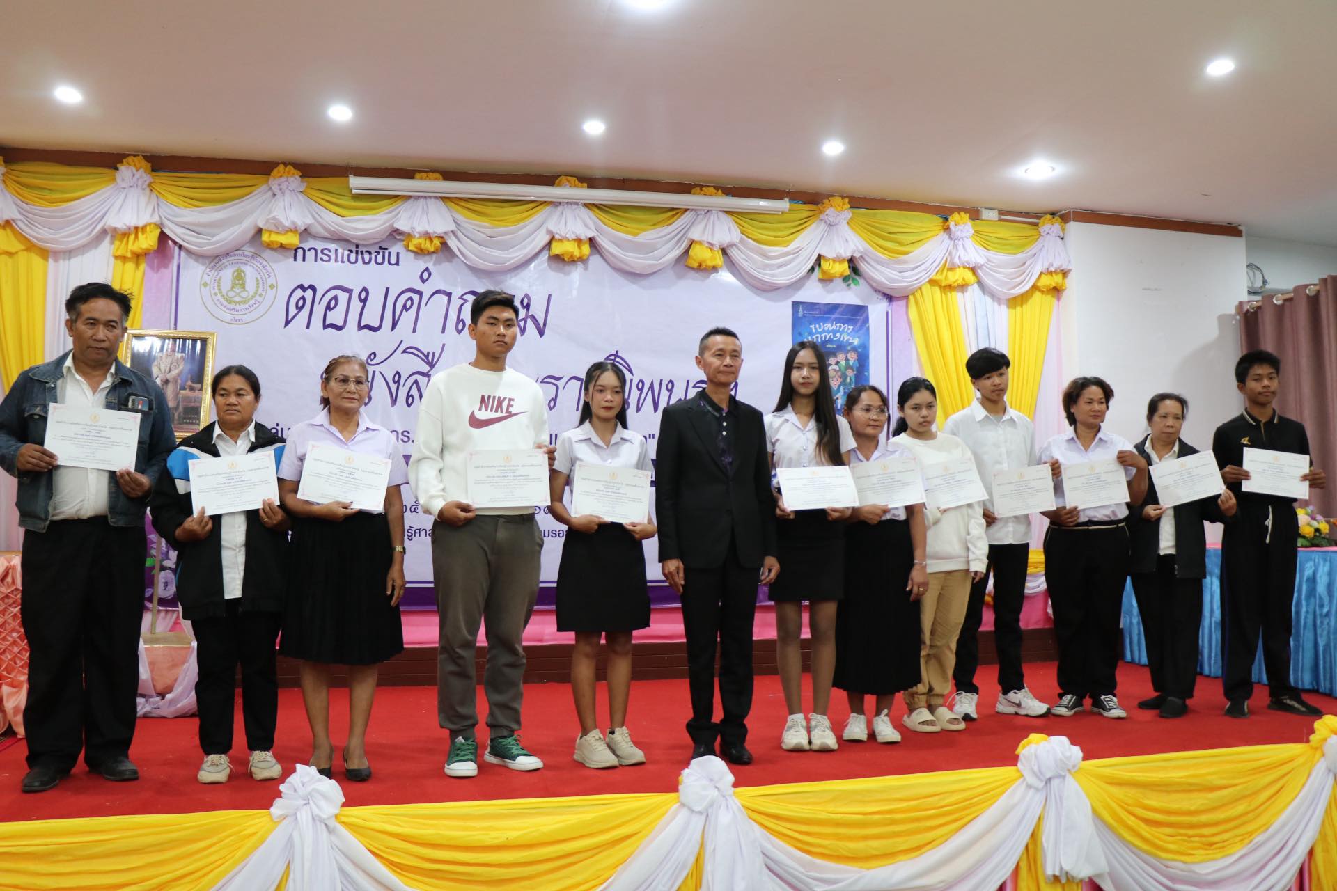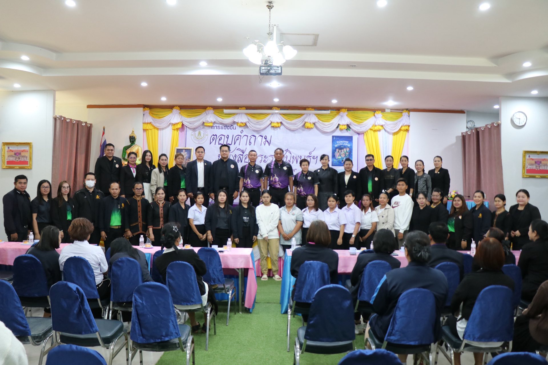 ดร.ถาวร พลีดี ผู้อำนวยการสำนักส่งเสริมการเรียนรู้ประจำจังหวัดอุบลราชธานี วิทยฐานะเชี่ยวชาญพิเศษ ประธานกลุ่มสำนักงาน สกร.จังหวัด กลุ่มสามเหลี่ยมมรกต เป็นประกล่าวเปิดโครงการแข่งขันตอบคำถามหนังสือพระราชนิพนธ์ฯ กลุ่มสำนักงาน สกร.จังหวัด “กลุ่มสามเหลี่ยมมมรกต” โดยมี นายประพันธ์ ทองพราว ผู้อำนวยการสำนักงานส่งเสริมการเรียนรู้ประจำจังหวัดยโสธร กล่าวรายงาน พร้อมด้วยคณะผู้บริหาร สกร.ประจำจังหวัด ครู บุคลากร และนักศึกษา จาก จังหวัดศรีสะเกษ ยโสธร อำนาจเจริญ และอุบลราชธานี เข้าร่วม ณ ห้องประชุม ศูนย์การเรียนรู้ศาสตร์พระราชา “เดินตามรอยพ่อ” สกร. สำนักงานส่งเสริมการเรียนรู้ประจำจังหวัดยโสธร